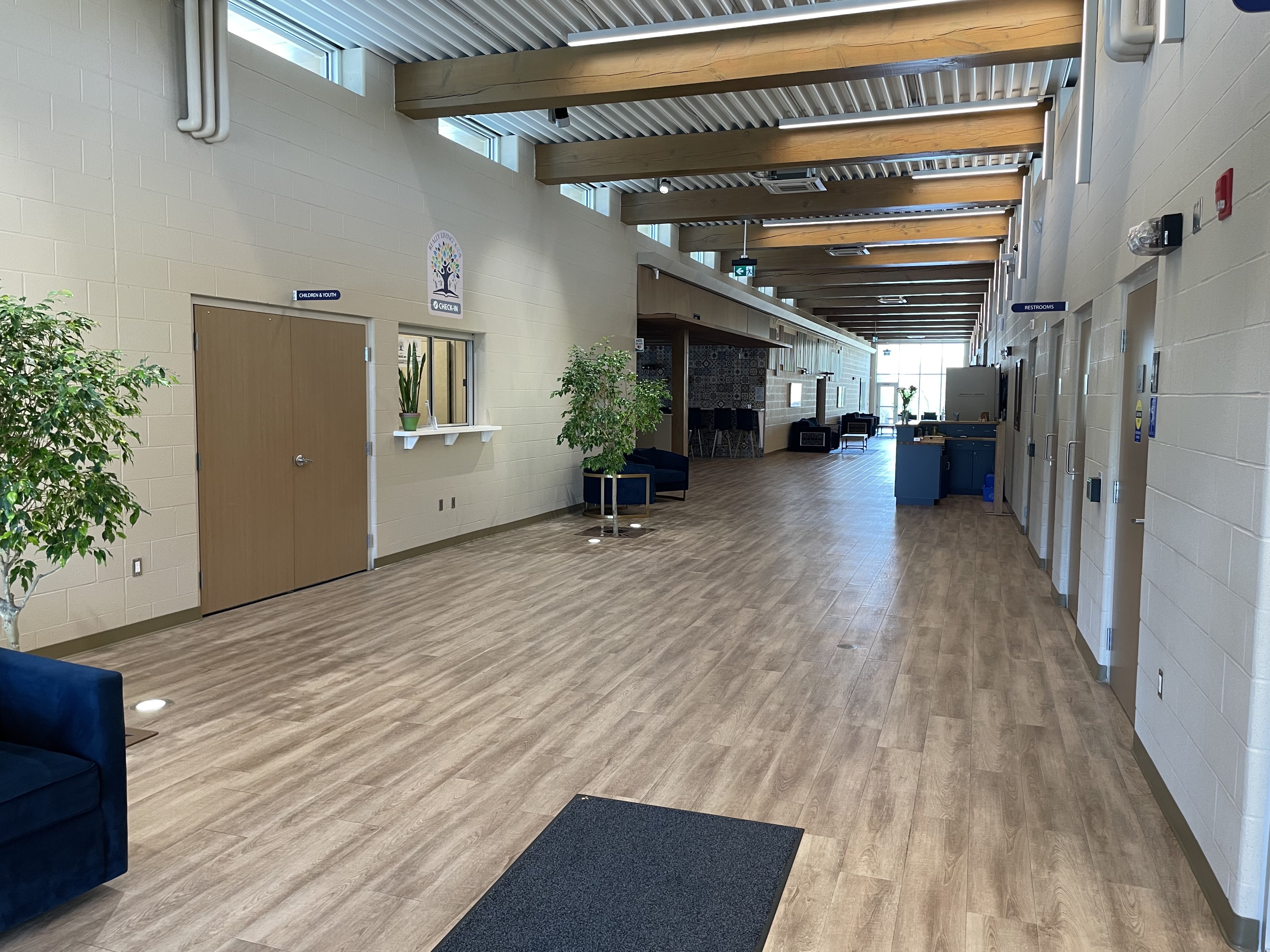 The really living centre is a 2300 sq. metre (25,000 sq. ft) state of the art community centre building constructed in 2019. It is equipped with a 376 seat auditorium, a gymnasium/multipurpose room, a commercial kitchen, a cafe area, and two conference rooms. If you’re interested in renting our space, please send an email to questions@reallyliving.ca with the following information: