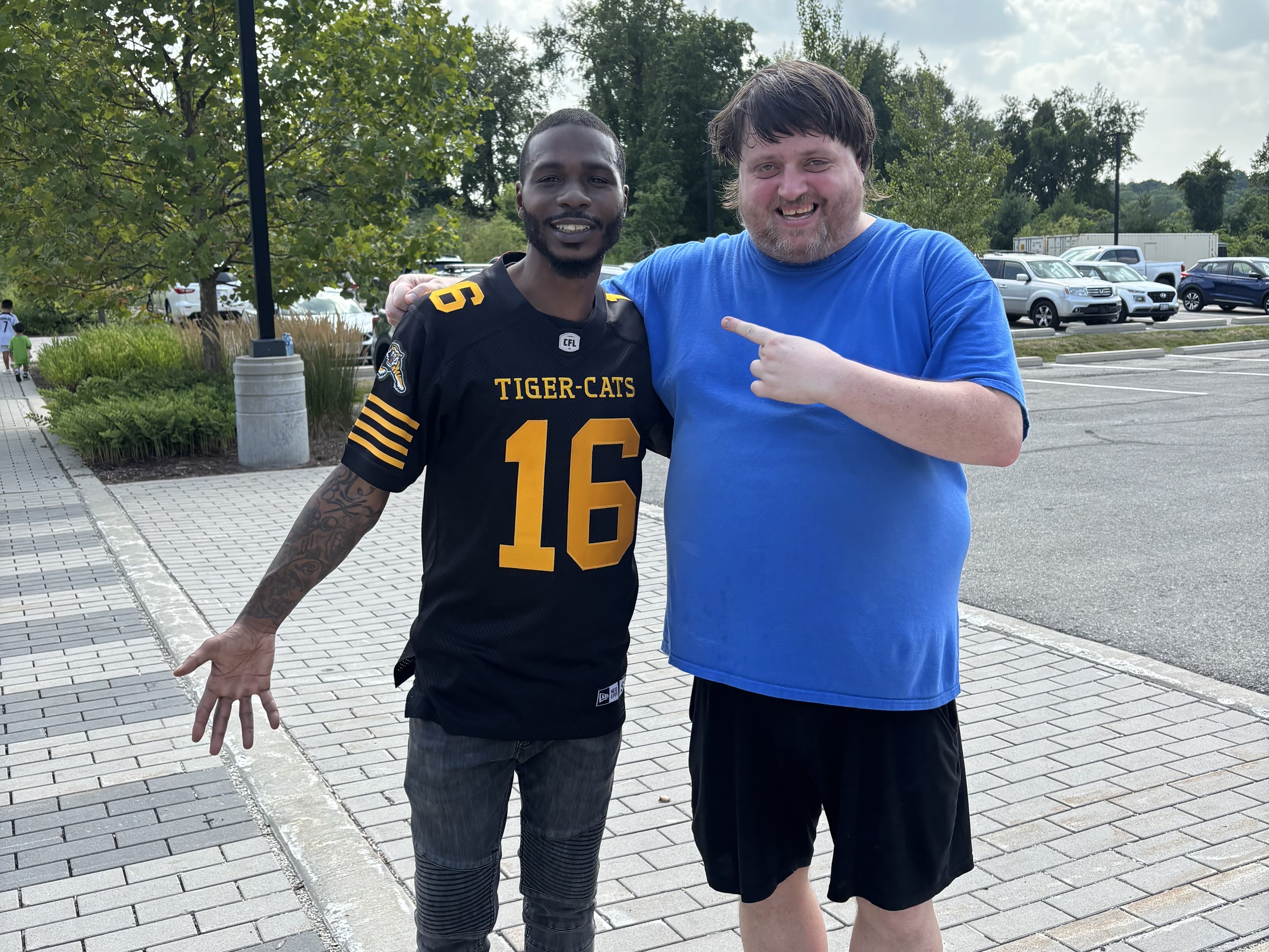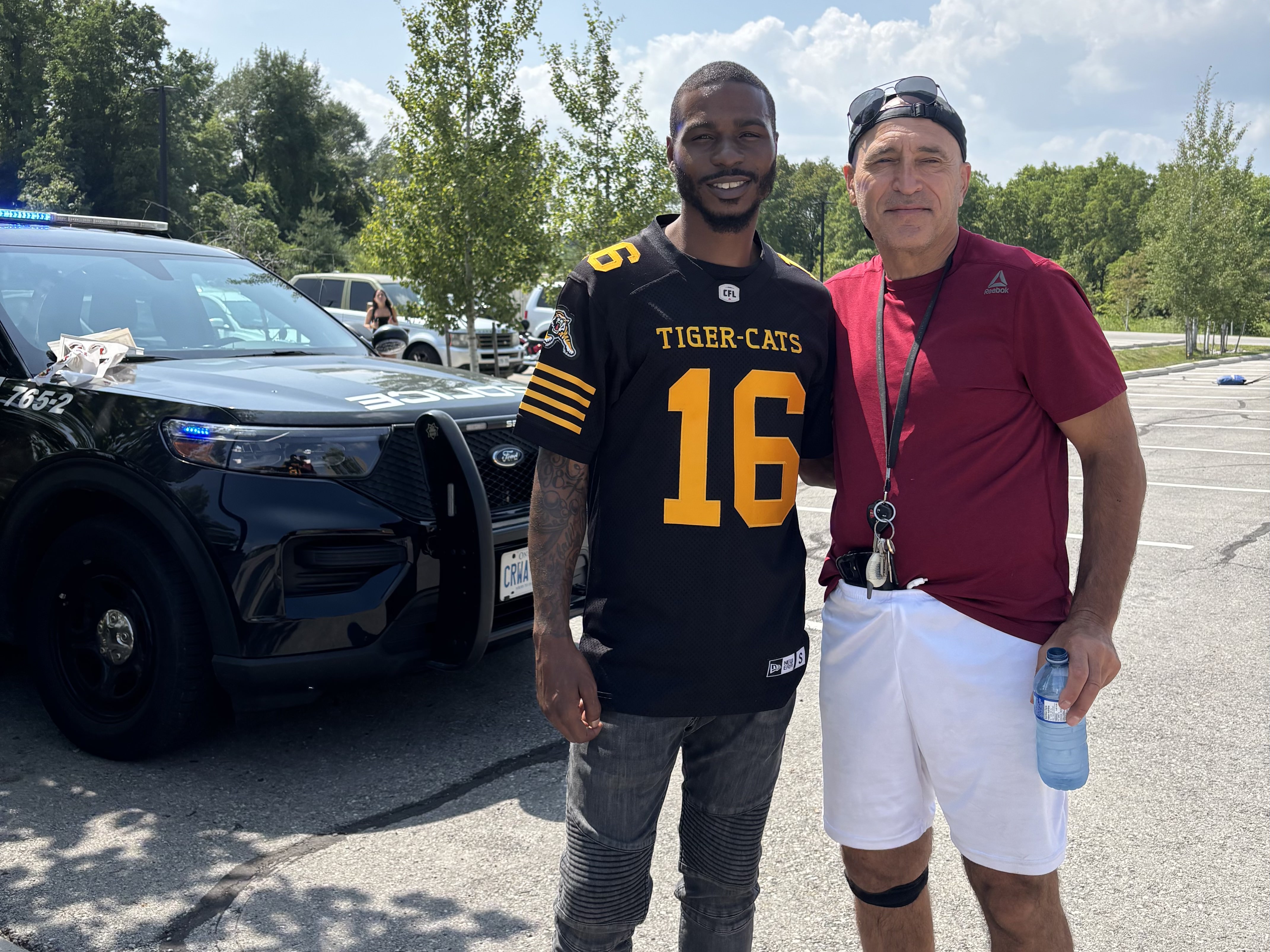 As a surprise for attendees, he brought along a special guest: Brandon Banks, a former wide receiver for the Hamilton Tiger-Cats in the Canadian Football League (CFL).